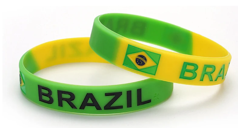 זוג צמידי סיליקון רך בצבע צהוב-ירוק עם דגל ברזיל